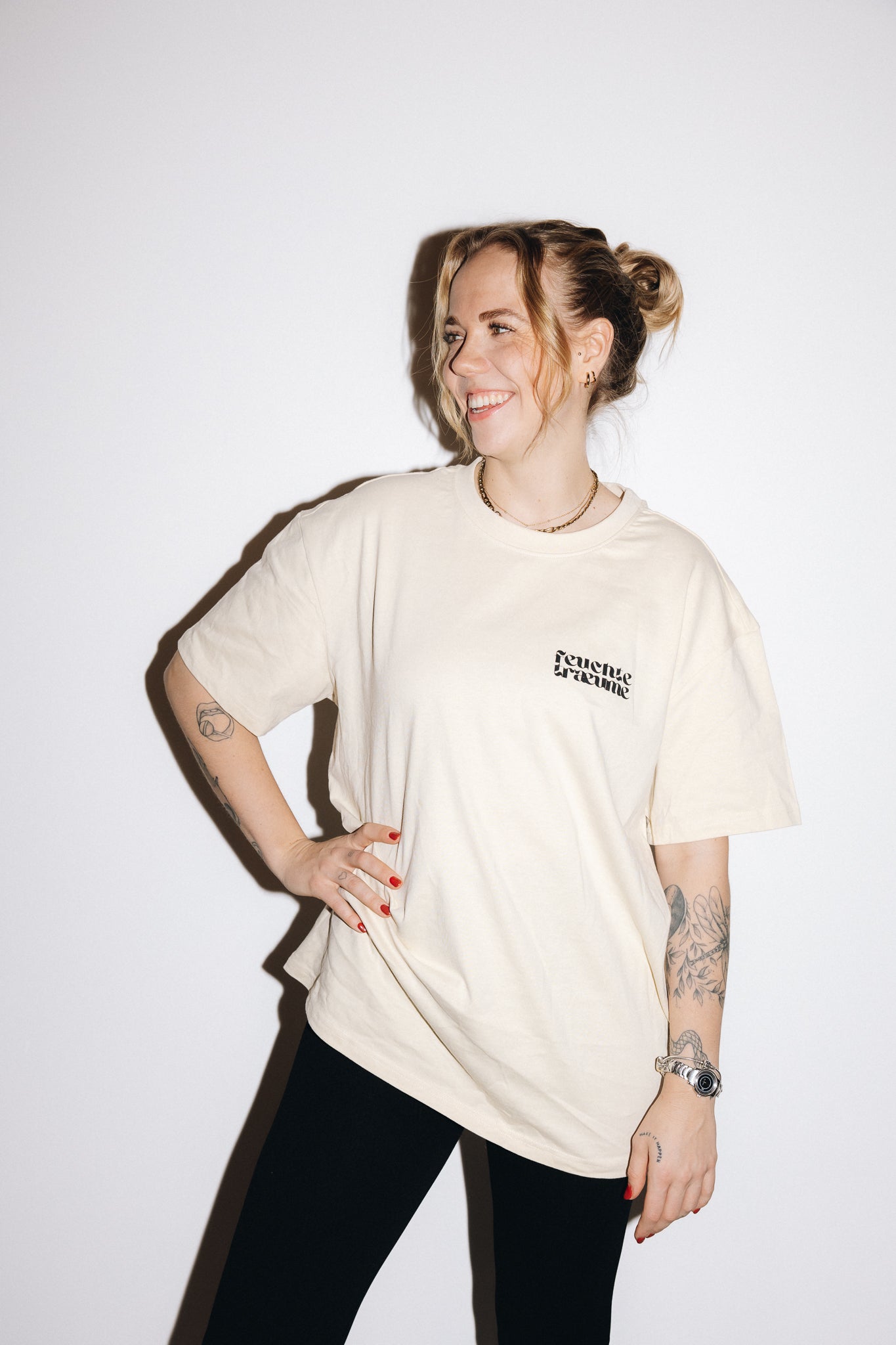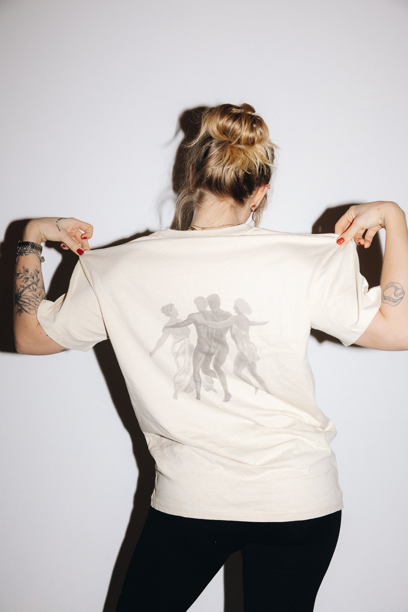 Inspiriert von der kraftvollen und zugleich zarten Ausstrahlung von Sappho, der Dichterin der Leidenschaft, verkörpert dieses Heavy Oversize Tee eine unaufdringliche Eleganz.